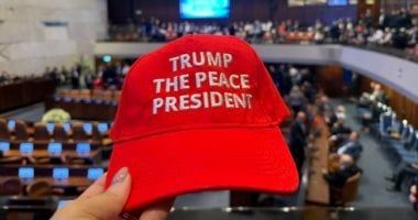 الإثنين، 13 أكتوبر 2025 12:22 موُزّعت قبعات بيسبول على طراز "ماجا"، الحركة القائمة على شعار الرئيس الأمريكى، "لنجعل أمريكا عظيمة مجددا" في الكنيست الإسرائيلي، بينما يستعد دونالد ترامب لاستقبالٍ حافلٍ من النواب الإسرائيليين.