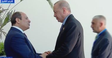استقبل السيد الرئيس عبد الفتاح السيسى، الرئيس التركي رجب طيب أردوغان، فور وصوله للمشاركة بقمة شرم الشيخ للسلام.