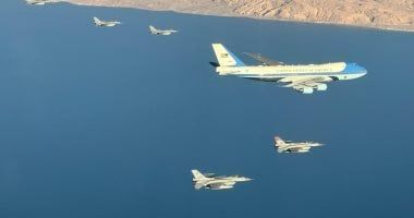وتضمن الفيديو لقطات ترصد لحظة دخول طائرة الرئاسة الأمريكية المجال الجوي المصري، حيث قامت مجموعة من الطائرات المقاتلة المصرية بمرافقتها في مشهد يعكس مستوى الجاهزية والاحترافية التي تتميز بها القوات الجوية المصرية.