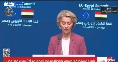 الخميس، 23 أكتوبر 2025 12:11 صقالت رئيسة المفوضية الأوروبية، أورسولا فون دير لاين، إن الاتحاد الأوروبى هو أكبر شركاء مصر التجاريين، واستثماراتنا العام الماضى كانت 49 مليار يورو وهذا مبلغ كبير، وفى قطاع الطاقة ندعم طموح مصر كى تصبح محطة للطاقة فى المنطقة.