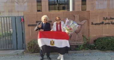 وفى تعبير عن فرحتهم بالمشاركة فى العملية الانتخابية ، حمل أبناء الجالية المصرية الورود والاعلام أمام مقر السفارة فى لفتة مبهجة للمصرييين فى الخارج.