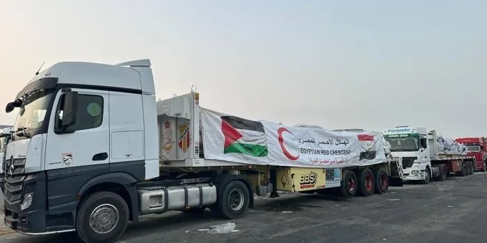 وأشار الشهود إلى أن الهلال الأحمر المصري يُسيِّر اليوم القافلة الـ68 من المساعدات، التي تضم مئات الشاحنات المحملة بالدقيق والمواد الغذائية الأساسية وسلال الإعاشة، إلى جانب المواد البترولية بأنواعها من بنزين وغاز.