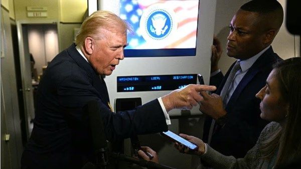 وخلال وجوده على متن طائرة الرئاسة يوم الجمعة، وأثناء مواجهته ضغوطاً متزايدة من المشرّعين في حزبه حيث يطالبون وزارة العدل بنشر جميع الوثائق المتعلقة بالمتهم بالاعتداءات الجنسية على القُصّر، وُجهت لترامب أسئلة من الصحفيين بشأن القضية.