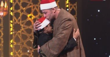 قبل القارئ الشيخ طه النعماني، رأس المتسابق الثالث محمد أحمد حسن إسماعيل القلاجى خلال الحلقة الثالثة من برنامج دولة التلاوة.