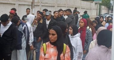 طابور من الشباب والفتيات فى لجنة مدرسة عباس العقاد