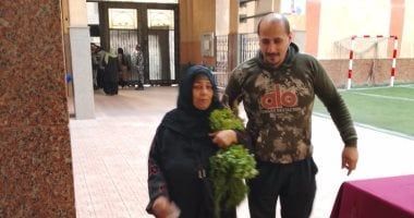 ناخبة تحمل الفجل داخل اللجنة الفرعية بالمطرية