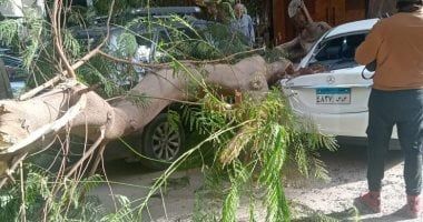 وأظهرت الصور التي التقطها "اليوم السابع" سقوط الشجرة على السيارتين وحدوث بعض التلفيات بهما، كما ظهرت أجزاءها متناثرة في الشارع، مما صعّب حركة المركبات بشكل كامل.