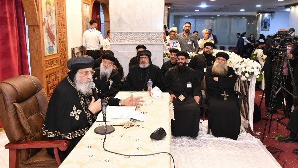 جاء ذلك قبل إلقاء قداسته عظته في اجتماع الأربعاء الأسبوعي، والذي عقد مساء اليوم في كنيسة السيدة العذراء والشهيد مار مينا بالمرج الشرقية.