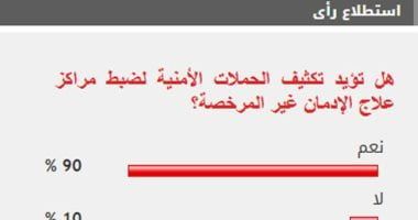 وأيد 90% من القراء مطالب تكثيف الحملات الأمنية لضبط مراكز علاج الإدمان غير المرخصة، بينما عارض 10% من القراء مطالب هل تؤيد تكثيف الحملات الأمنية لضبط مراكز علاج الإدمان غير المرخصة.