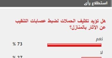 وأيد 73% من القراء مطالب تكثيف الحملات لضبط عصابات التنقيب عن الآثار بالمنازل، بينما عارض 27% من القراء مطالب تكثيف الحملات لضبط عصابات التنقيب عن الآثار بالمنازل.