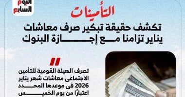 - تصرف التأمينات الاجتماعية معاشات شهر يناير 2026 في موعدها المحدد، اعتبارًا من يوم الخميس الموافق 1 يناير 2026.