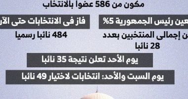 أعد "اليوم السابع" انفوجراف بتشكيل مجلس نواب 2025 المكون من 586 عضوًا بالانتخاب، ويعين رئيس الجمهورية 5% من إجمالى المنتخبين بعدد 28 نائبًا.