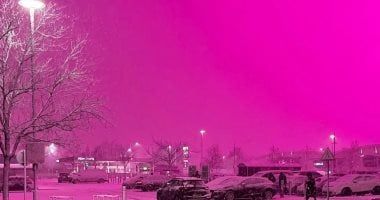 شهدت مدينة برمنجهام وأماكن حولها، سماءً وردية زاهية أثارت دهشة السكان، وذلك نتيجة العاصفة جورتي التي جلبت معها رياحًا عاتية وكميات كبيرة من الثلوج، وأوضح سيمون كينج من قسم الطقس في بي بي سي أن تساقط الثلوج وكثرة الغيوم جعل السماء عاكسة للغاية، ما ساهم في ظهور التوهج الوردي، وأضاف أن ملعب سانت أندروز، مقر نادي برمنجهام سيتي لكرة القدم، كان يستخدم أضواء LED وردية للعناية بالعشب، وهو ما زاد من تأثير اللون على السماء.