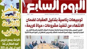 ينشر "اليوم السابع" فى عدده الصادر غدا الأربعاء، تفاصيل هامة حول العديد من الأحداث الجارية على الساحتين الداخلية والخارجية أبرزها: توجيهات رئاسية بتذليل العقبات لضمان الانتهاء من تنفيذ مشروعات حياة كريمة.. الرئيس السيسى يعقد اجتماعا موسعا لمتابعة مستجدات الموقف التنفيذى للمرحلة الأولى من المبادرة الرئاسية.. ويؤكد أهمية الاستعداد المكثف والمدروس للانطلاق فى تنفيذ المرحلة الثانية.