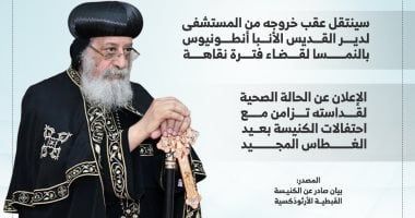 وأضاف البيان أن قداسته سينتقل عقب خروجه من المستشفى إلى دير القديس الأنبا أنطونيوس بالنمسا، لقضاء فترة نقاهة، بما يضمن تعافيه الكامل قبل العودة إلى مصر واستئناف مهامه الرعوية والكنسية.