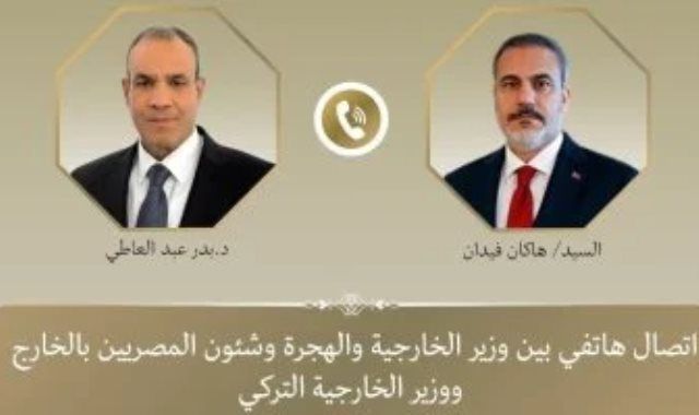 جرى اتصال هاتفى اليوم الاثنين بين د. بدر عبد العاطى وزير الخارجية والهجرة وشؤون المصريين بالخارج، وهاكان فيدان وزير خارجية جمهورية تركيا، فى إطار التشاور والتنسيق بشأن التطورات الإقليمية، وتبادل الرؤى حول عدد من القضايا ذات الاهتمام المشترك.