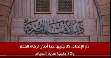 دار الإفتاء المصرية تحدد زكاة الفطر 2026 بقيمة 35 جنيهًا كحد أدنىوكانت قد حددت دار الافتاء قيمةَ زكاة الفطر لهذا العام [1447هـ- 2026م] بـ (35 جنيهًا) كحدٍّ أدنى عن كل فرد، موضحة أن تقدير قيمة زكاة الفطر لهذا العام، جاء بالتنسيق مع مجمع البحوث الإسلامية بالأزهر الشريف.