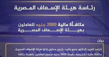 ووجّهة الدكتور عمرو رشيد، رئيس مجلس إدارة هيئة الإسعاف المصرية، بالعمل على صرف تلك المكافأة قبل حلول عيد الفطر المبارك، أعاده الله على مصر قيادةً وشعبًا بالخير واليمن والبركات.
